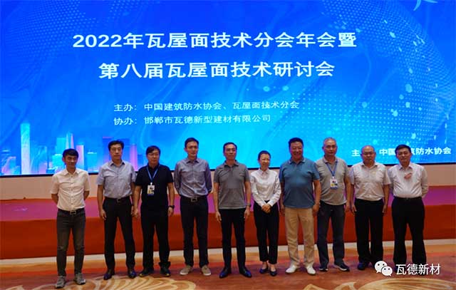 7月27日,由瓦德新材協(xié)辦,作為2022第三屆防水行業(yè)大會平行論壇的2022年第八屆瓦屋面技術(shù)與市場研討會,在南京白金漢爵大酒店召開。瓦德新材董事長謝富強帶隊參加。