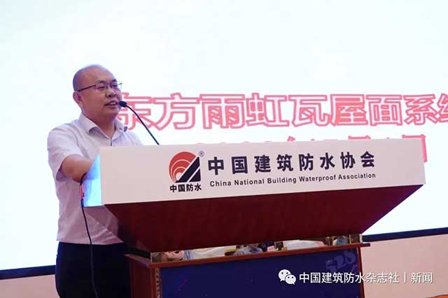 中國建筑防水協(xié)會瓦屋面技術(shù)分會輪值會長、邯鄲市瓦德新型建材有限公司董事長謝富強代表協(xié)辦單位致辭。